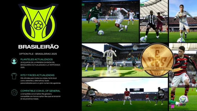 El Option File General 2025 trae actualizaciones completas para PES, incluyendo plantillas, kits y rostros actualizados de equipos y selecciones. Con un enfoque en el realismo y la autenticidad, esta nueva versión ofrece una experiencia de juego única, mejorando cada detalle visual y jugable para sumergirte en el fútbol más realista. ¡Disponible ahora para mejorar la experiencia en PES! Descargar